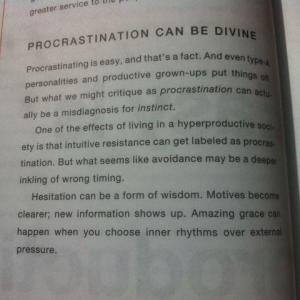 And I can agree with the author. There have definitely been times when my procrastination has paid off – when things have become clearer, or fallen into place because I have hesitated before completing something.
