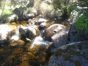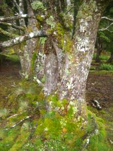 Footfalls on the trail are muffled by the layer of leaf litter, broken occasionally by the crunch of twigs and and silenced by the soft spongy moss. Out in the open, crossing the paddocks – with their damnable button grass – is harder. The button grass grows in high clumps, close together, creating deep narrow ravines. The choices are to using the grass itself as stepping stones… sort of… or try and walk between the grasses, though when the base of the clump is halfway up to your knee this can be tricky (and what about snakes!!). Thankfully most of the paddocks have walking tracks where the button grass has been thinned out – but we did head ‘cross country’ a couple of times as we explored the area.